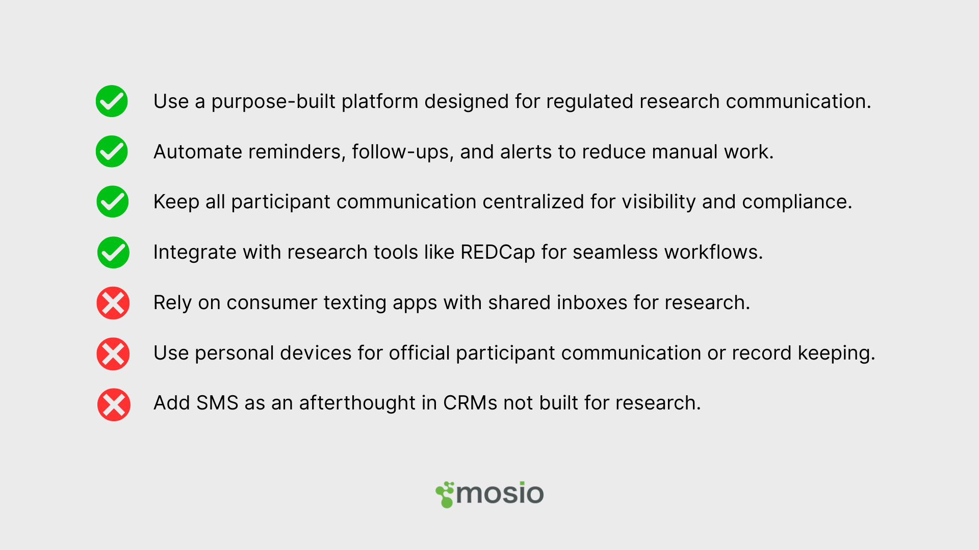 Why? Clinical research teams want reliable, compliant communication that reaches participants quickly, keeps data flowing, and does not raise red flags with IT or compliance departments.